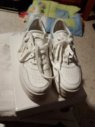 Zapatillas Skechers blancas. Talla grande: pone 39 pero en realidad es un 41