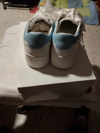 Zapatillas deportivas Guess con un diseño moderno y cómodo. - Color blanco con detalles en azul. - Cierre con cordones. - Suela gruesa.