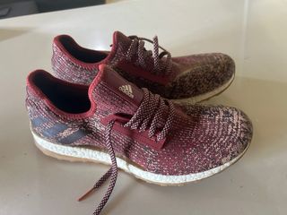 Zapatillas deportivas Adidas Pureboost con un diseño moderno y llamativo. Usadas una sola vez. - Tejido transpirable. - Suela con tecnología Boost para mayor comodidad. - Detalle de las tres bandas Adidas en los laterales.