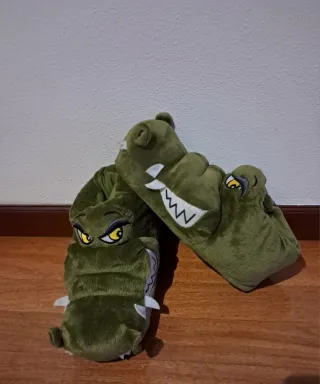 Divertidas zapatillas de casa con forma de cocodrilo. - Diseño de animalitos. - Material suave y cómodo.