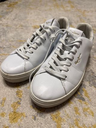 Zapatillas de lona de la marca Victoria en color beige y suela blanca. Perfectas para el día a día. Prácticamente no se han usado, están casi nuevas. Puede verse el estado de la suela en una de las fotos. - Cierre con cordones. - Detalle de logo en el lateral. - Suela de goma.