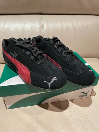 Zapatillas Puma Speedcat en color negro con detalles en rojo. Perfectas para un estilo deportivo y casual. Nuevas, sin estrenar. - Exterior de ante. - Cierre de cordones. - Suela de goma.