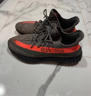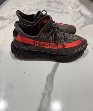 Zapatillas Adidas Yeezy Boost 350 V2 en color gris y naranga. - Diseño distintivo con franja lateral. - Parte superior de tejido Primeknit.