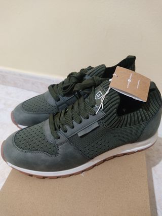 Zapatillas casual Álvaro Moreno talla 41, color verde oliva. Son nuevas a estrenar con su etiqueta y su embalaje. Las compré para un regalo, me equivoqué de talla y perdí el ticket, por lo que no puedo devolverlas, por eso las vendo. - Diseño deportivo y cómodo. - Ideales para paseo y vestir. - Material tejido de punto. - Suela de goma resistente.