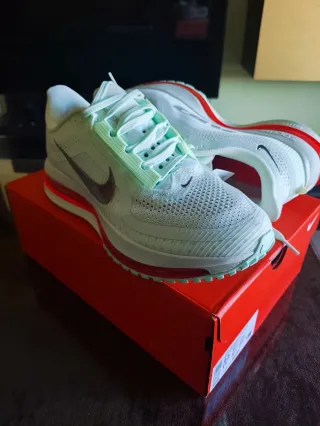 Zapatillas deportivas Nike para hombre, con un diseño moderno y llamativo. - Combinación de colores verde y rojo. - Detalle de logo plateado en el lateral. - Suela con amortiguación visible. Se vende por ser un regalo y no ser mi número