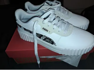 Zapatillas deportivas Puma en talla 40. Combinan blanco con detalles en estampado de serpiente. - Diseño moderno y llamativo. - Cierre con cordones.