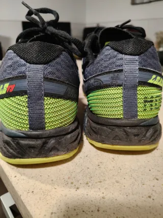 Zapatillas de trail running New Balance leadville en talla 44. Diseñadas para ofrecer rendimiento en terrenos irregulares, 4 veces utilizadas, se venden por falta de uso. - Parte superior de malla transpirable. - Suela con buen agarre. - Detalle de logo 'N' en color verde lima.