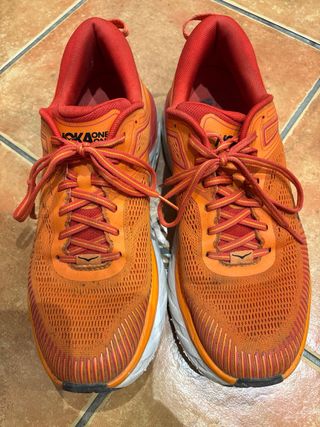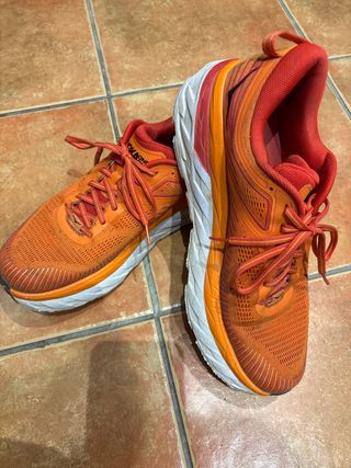 Zapatillas Hoka modelo Bondi 7. - Color naranja y rojo. - Talla 44.5.