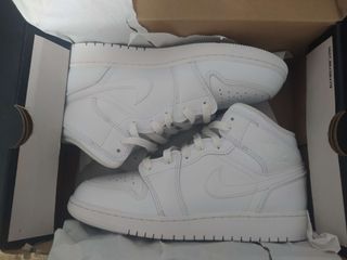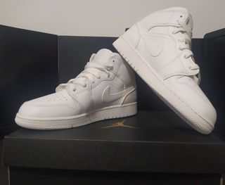 Zapatillas Air Jordan 1 Mid en color blanco. - Diseño clásico de caña media. - Swoosh lateral característico. - Cordones blancos a juego.