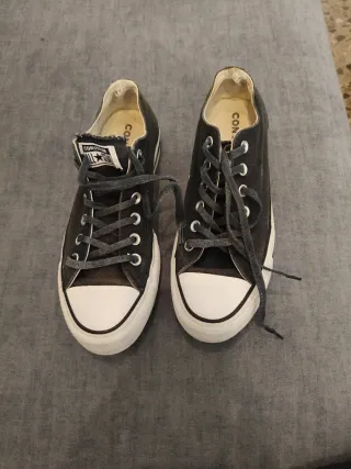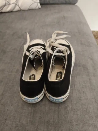 Zapatillas de lona con cordones. - Diseño clásico. - Suela de goma blanca. - Detalle de costuras.