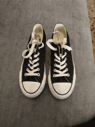 Zapatillas de lona estilo clásico. - Color negro con detalles blancos. - Cierre de cordones. - Suela de goma blanca.