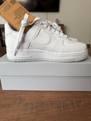 Vendo Nike Air Force 1 ’07 blancas, originales y en talla 36. Están completamente nuevas, sin uso, con caja original y etiquetas. Modelo clásico y muy combinable, perfecto para uso diario. Las vendo porque finalmente no voy a usarlas. Estado: Nuevo con etiquetas Con caja original Con etiquetas Color: Blanco Talla: 36 Envío rápido y bien protegido. Si tienes alguna pregunta, no dudes en escribirme.