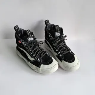 Zapatillas altas "Vans", modelo Sk8-Hi Mite 2.0 Dx, en color negro y blanco, talla 36.5. Están confeccionadas en su parte superior en cuero y ante resistentes al agua. Tienen cierre de cordones, forro polar interior, plantilla extraíble moldeada UltraCush, refuerzo en el talón, caucho en la puntera y suela MTE 2.0 favoreciendo el agarre. Están usadas, pero muy bien conservadas.🖤🤍 ✔️Sólo envíos.