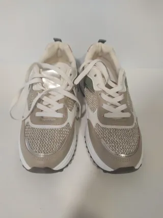Zapatillas deportivas a estrenar. - Diseño moderno en blanco y dorado. - Talla 42.