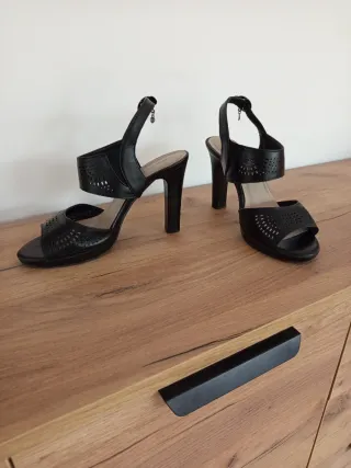 Elegantes zapatos de tacón con un diseño moderno. - Tacón de aguja. - Cierre con hebilla dorada. - Diseño abierto con tiras.
