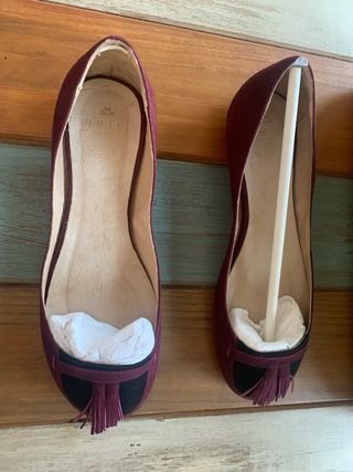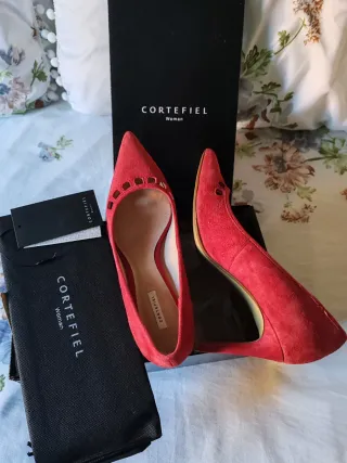 Se venden estos zapatos: Los mocasines son de Marypaz Los tacones rojos son de Cortefiel