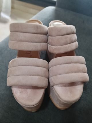 Elegantes zapatos de cuña con un diseño acolchado. - Material exterior de ante. - Plataforma gruesa para mayor comodidad. - Tira ancha en el empeine. -Nuevos valorados en 210€ -Cuña de 9 cm.