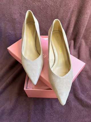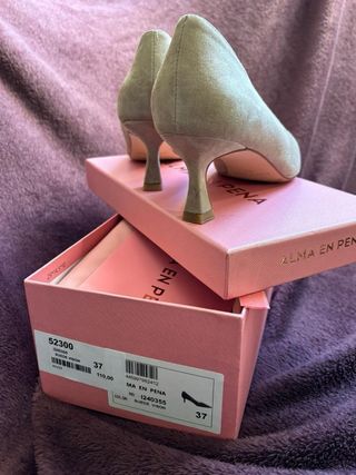Zapatos de tacón de vestir de Alma en Pena, quedan preciosos puestos, a mí me están muy justos, es un 38 que da poca talla. Me los he puesto 3 veces.