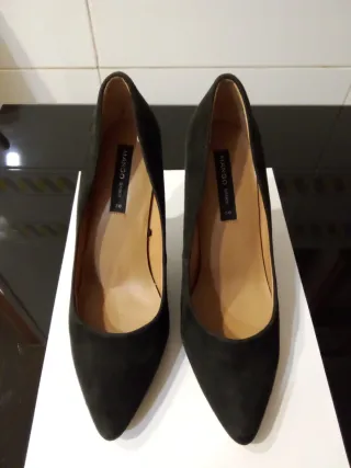 Msngo, talla - 36 . Color negro en antelina . Tacon de aguja de 9 cm. En perfecto estado.