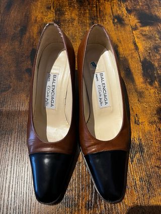 Elegantes tacones de la marca Balenciaga de tacón bajo. Solamente un poco desgastados en la zona de los espais (suela). #balenciagaparís #zapatosmujer #zapatoselegantes #modamujer #estilo vintage