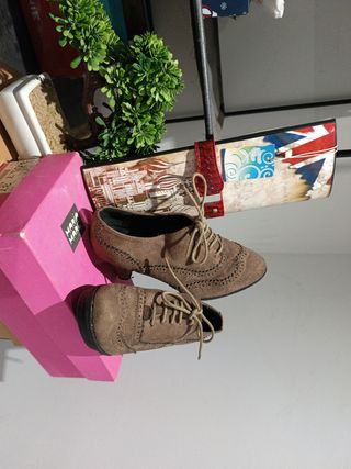 Cartera sin estrenar y blucher de tacón con una sola puesta.
