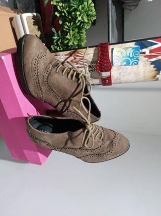 Zapatos tipo blucher sin estrenar, con etiqueta. - Color topo. - Diseño con picados decorativos. - Cierre de cordones.