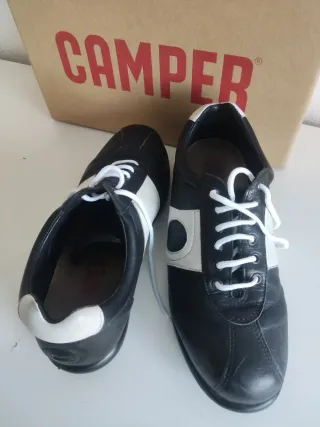 Zapatos de piel negros de la marca Camper. - Diseño elegante y versátil. - Cierre con cordones. - Suela de goma. - Detalle de logo en la plantilla. - Usados una sola vez. Están perfectos. - Se entregan en su caja original.