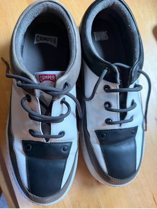Zapatos Camper modelo Pelotas en talla 42 con poco uso. Combinan cuero negro con detalles en tono beige. Bien cuidados.