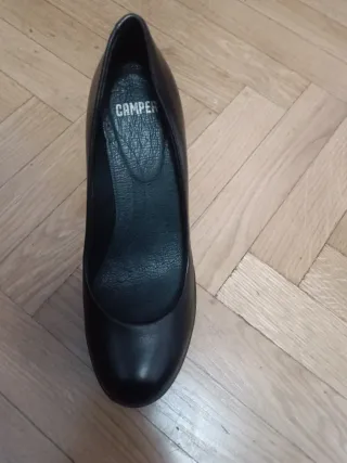 Vendo un par de zapatos Camper. Son de color negro y tienen un diseño clásico. Están en buen estado, aunque presentan algunas señales de uso. - Son de cuero. - Tienen cordones. - Son cómodos y elegantes. Para colegio ideales