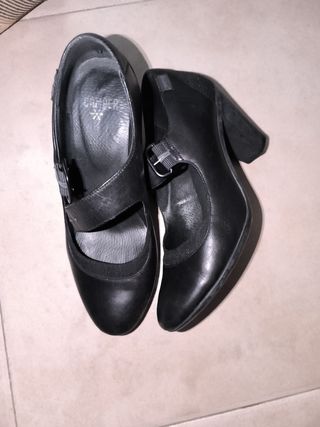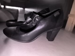 Preciosos zapatos de tacón de la marca Camper. Son de color negro y tienen cierre de velcro. Ideales para cualquier ocasión. - Tacón de altura media, 7 cm - Material de cuero. - Muy cómodos y elegantes. - Perfecto estado.