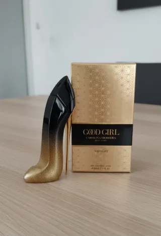 Perfume Good Girl Midnight de Carolina Herrera. - Fragancia en presentación de 90 ml. - Diseño icónico en forma de zapato de tacón. - Tonos degradados de negro a dorado brillante.