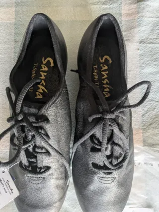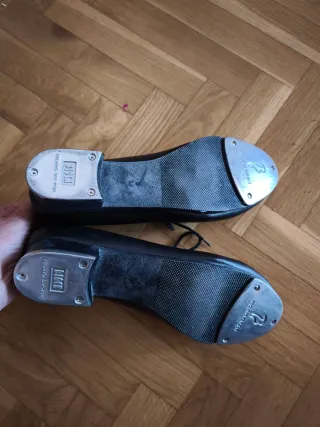 Zapatos de claqué de piel unisex de la marca Capezio. Se compraron para ir a clases de claqué pero finalmente no pudo ser, asi que están nuevos. Costaron casi 100 euros.