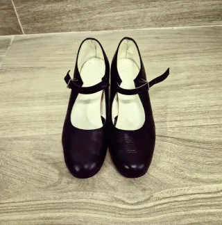 Zapatos de claqué negros, talla 39. Perfectos para practicar este baile. - Diseño clásico con tira. - Suela antideslizante.