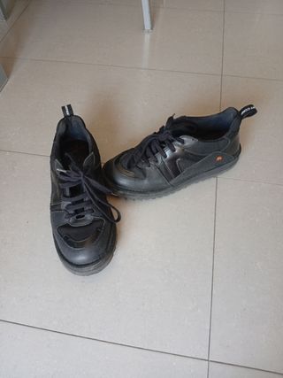 Se venden zapatos escolares Gorila para niño, talla 44. Son de color negro y tienen un diseño práctico con cierre de velcro. Los zapatos están usados pero en buen estado, con algunas señales normales de uso.( una rozadura en un lateral como se ve en la foto)