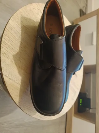 Zapatos clásicos de vestir en color negro. Usado un par de veces dejó de caber. Ideal para zapato de colegio. Muy resistente y buena calidad - Cierre de velcro. - Diseño elegante y cómodo. - Suela de goma.