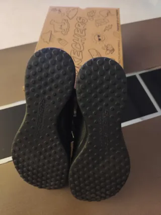 Zapatos negros de la marca Skechers, talla 33. - Color negro. - Cierre de velcro. - Plantilla Air-Cooled Memory Foam. En buen estado