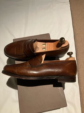 Icónicos zapatos de la marca inglesa Crockett & Jones. Modelo Boston (tipo mocasin/ loafers). Color Marrón. Piel de ternero (Burnished calf) Talla 8UK (42 o 42,5 Eu) Ancho E (Horma ancha, quedan amplios y cómodos). Con algunas marcas de uso y alguna mancha fácil de eliminar, pero en muy buen estado general. #Alden #Church's #Allen Edmonds #Carmina #Meermin #John Lobb #Paraboot #JM Weston #Edward Green