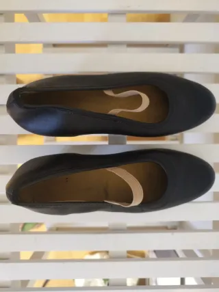 Zapatos de baile negros, perfectos para practicar. - Talla 38. - Color negro. - Diseño con tira y hebilla. - Suela interior con logo y número de talla.