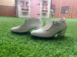 Zapatos de flamenco de color blanco, talla 38. Ideales para bailar. - Tacón grueso y estable. - Tira de sujeción al tobillo. - Suela de goma.