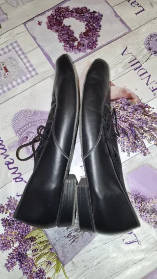 Zapatos cerrados con cordones. Altura de tacón 4 cm.