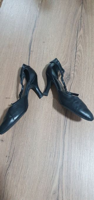 zapatos negros 100% piel y suela de cuero 7 cm de tacón especiales para baile de muy buena calidad