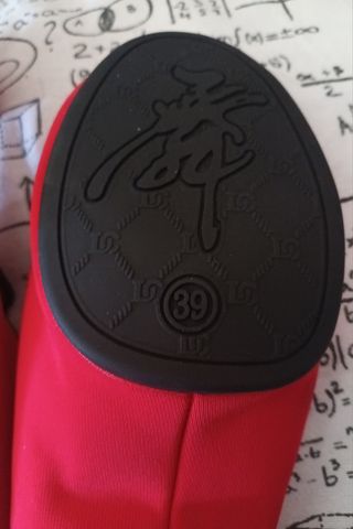 Zapatillas de baile rojas, talla 39. Ideales para clases o ensayos. Son cómodas y parecen estar en buen estado. - Diseño elegante y sencillo. - Suela de goma resistente. - Cierre con cordones.