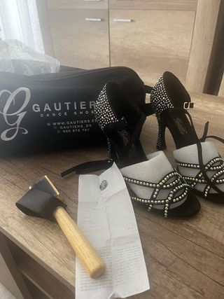 se venden zapatos de baile de color negros con pedreria del número 36. El tacón es de 9’5 cm. se venden habiendolos utilizado dos veces literal! no acerté con la talla y...no se pueden devolver o cambiar si lo has utilizado aunque sea una o dos veces...como es lógico. Aun asi estan NUEVISIMOS! los vendo con cepillo que también lo compré, nuevo! y con la funda para llevar los zapatos. No negocio bajada de precio, ya que es un producto caro y por su buen estado, mas no lo puedo rebajar. cualquier otra consulta escribeme sin compromiso!