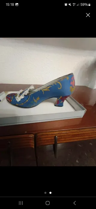 Vendo traje de fallera talla aproximada 44 hecho a medida el precio va incluido dos pares de zapatos un par sin estrenar y un corpiño de manga farol