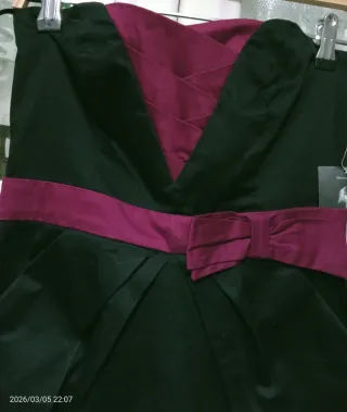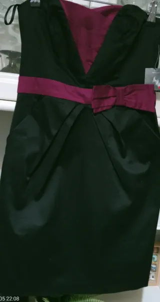 Vestido de fiesta , palabra de honorcon un diseño elegante, está con su etiqueta y tiene una composición de 97% algodón y 3% elastan. - Detalle de fajín con lazo. - Escote en V con drapeado. Lleva bolsillos laterales y una cremallera oculta en la espalda para abrirlo y cerrarlo una vez puesto. Para un look elegante con unos bonitos zapatos estiletos, o unas sandalias negras de charol. Entrego en Madrid capital y hago envíos.