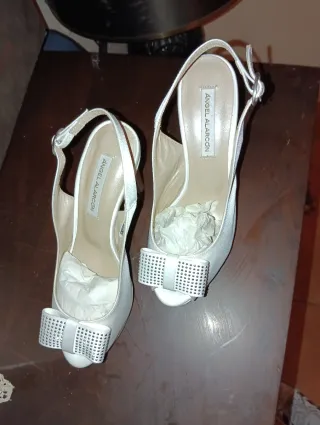 Preciosas sandalias de tacón de la marca Arian, ideales para eventos, bodas o graduaciones. Tienen un acabado en satén gris plomo con un brillo muy elegante que combina con todo. Lo mejor de estos zapatos: Diseño: Tiras cruzadas que sujetan muy bien el pie y estilizan. Comodidad: Llevan una pequeña plataforma delantera, por lo que el tacón no se siente tan alto y son cómodos para bailar. Cierre fácil: Cremallera en la parte trasera del talón (no pierdes tiempo con hebillas). Estado: Muy cuidado, usados solo en un par de ocasiones. Tapas y suelas en buen estado.