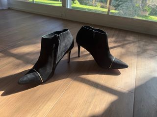 Elegantes botines de tacón alto con un diseño moderno Marca Gloria Ortiz talla 41 en perfecto estado - Material exterior de ante. - Punta afilada. - Cierre de cremallera lateral. Pdb: zapatos, tacones, botas, botines , mujer, chica, adolescente , elegante, moderno, ante, piel, boda, fiesta , cóctel, comunión, cena, gala