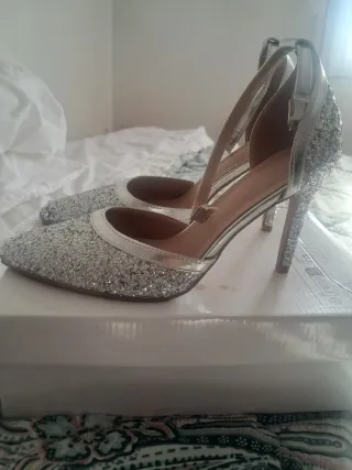 Zapatos de fiesta plateados talla 38