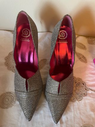 Elegantes zapatos de tacón de Ursula Mascaro, perfectos para eventos o salir. - Diseño en tonos plateados. - Fantastica horma y cómoda - Punta y tacón alto. - buen agarre al pie. - Estos zapatos estan alrededor de 200€ en tienda