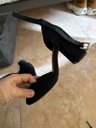 Elegantes zapatos de tacón medio, perfectos para ocasiones especiales. - Diseño de tira al tobillo. - Acabado en ante. - Tacón de altura media.